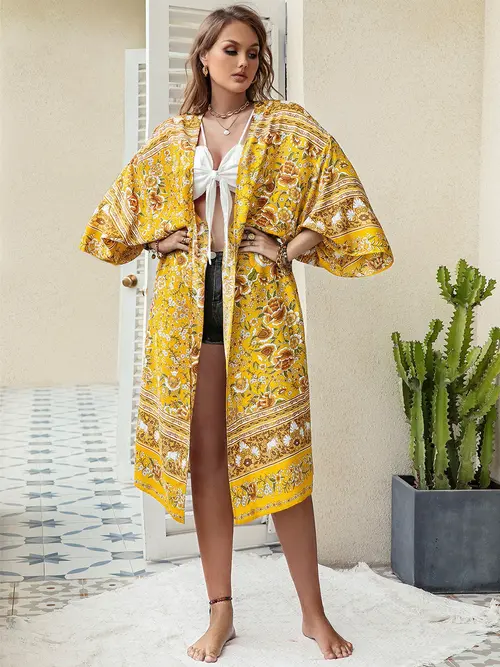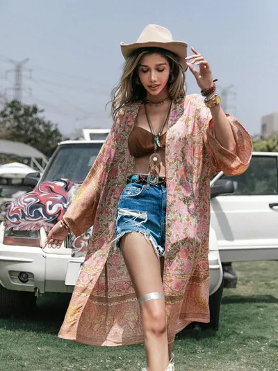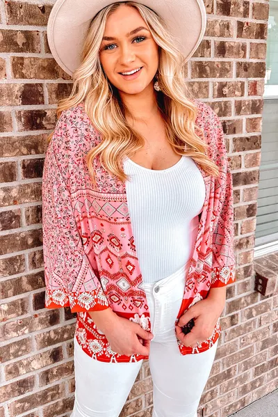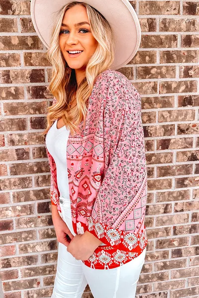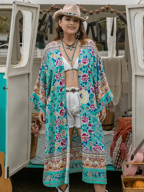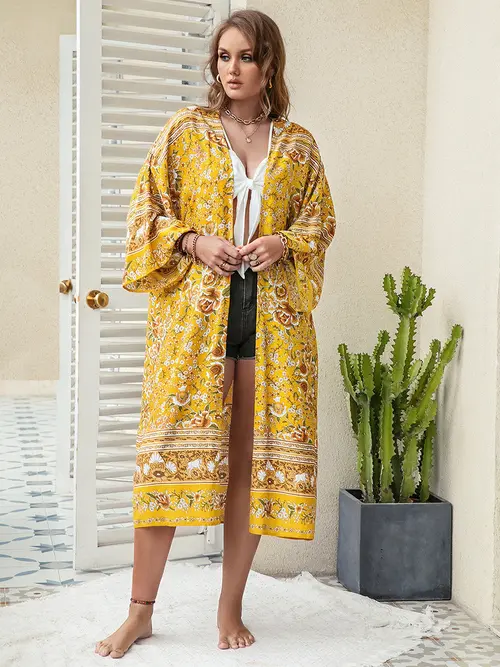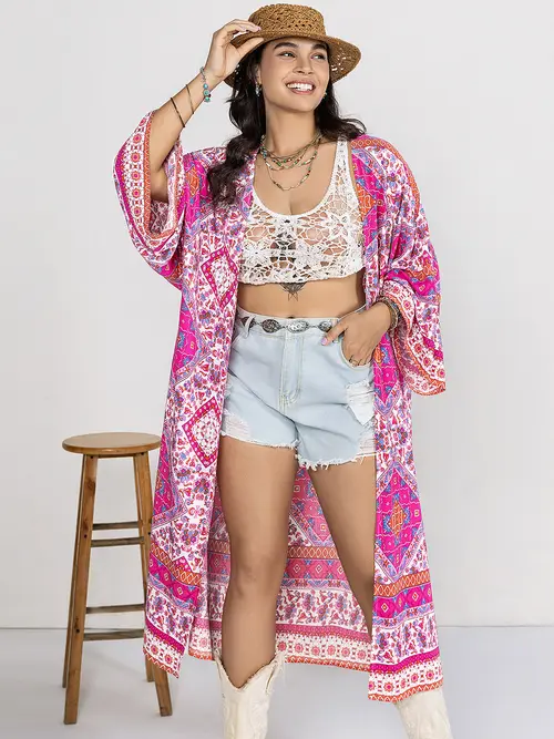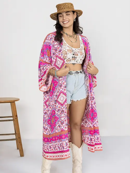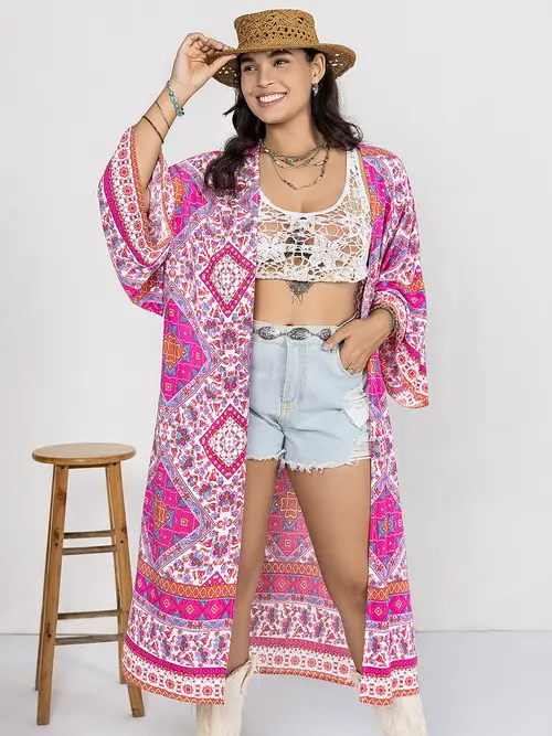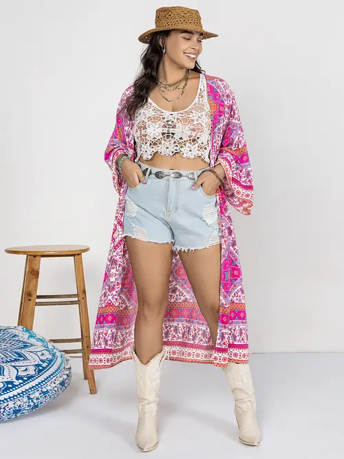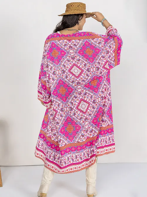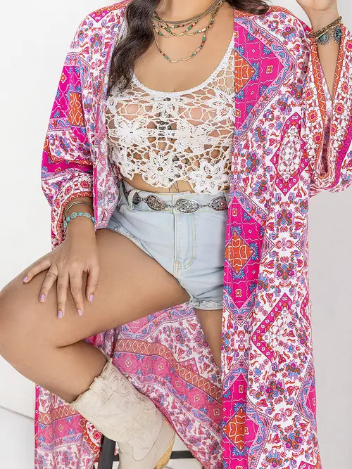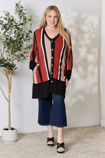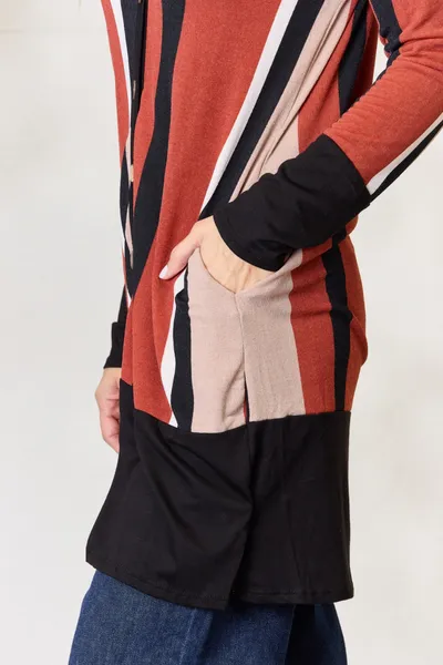 Double Take Leopard Plaid Open Front Longline Cardigan with Pockets