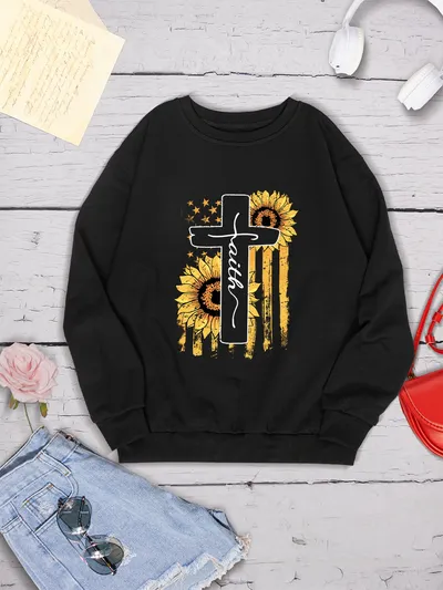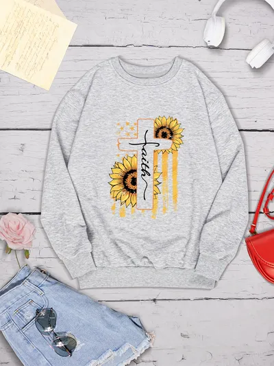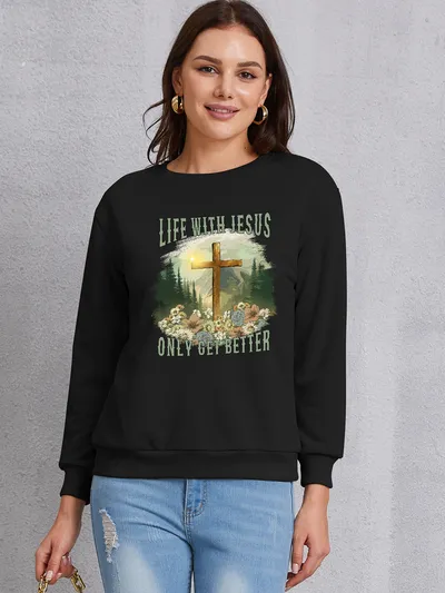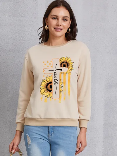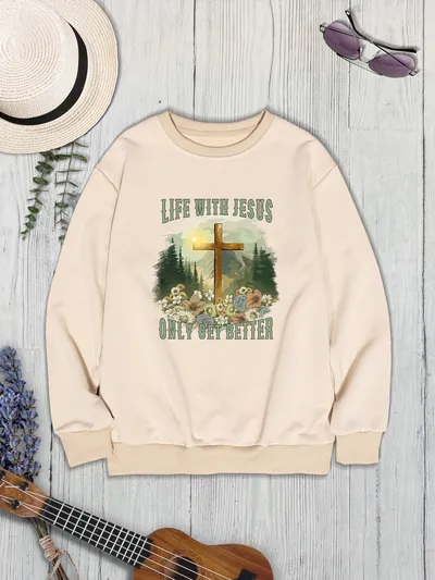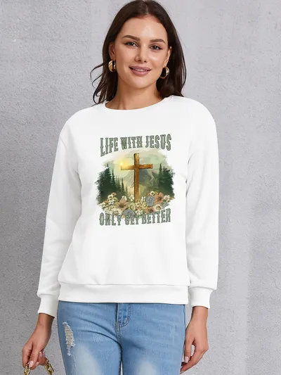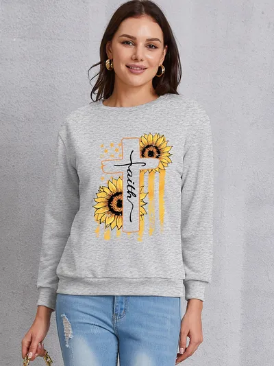 Simply Love Full Size EAT DRINK & BE THANKFUL Round Neck Sweatshirt