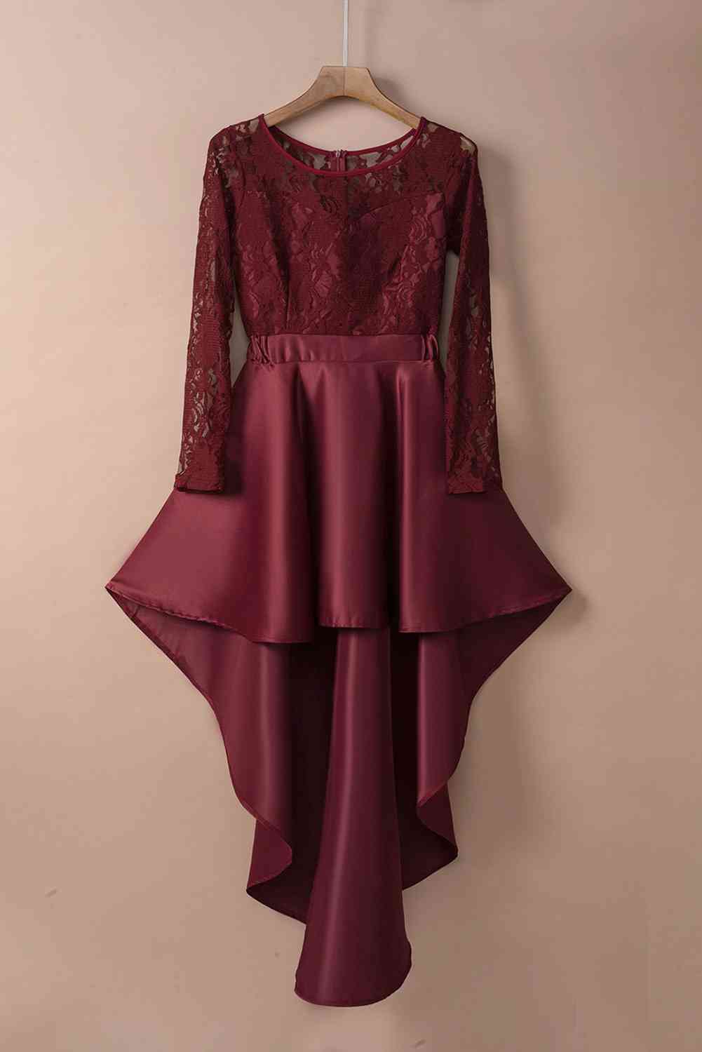 Spliced Lace High-Low Long Sleeve Dress