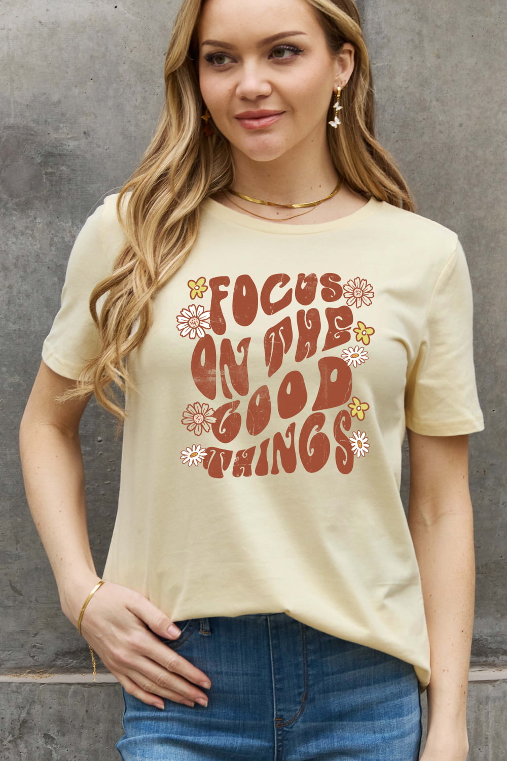 Simply Love Full Size FOCUS ON THE GOOD THINGS Graphic Cotton Tee