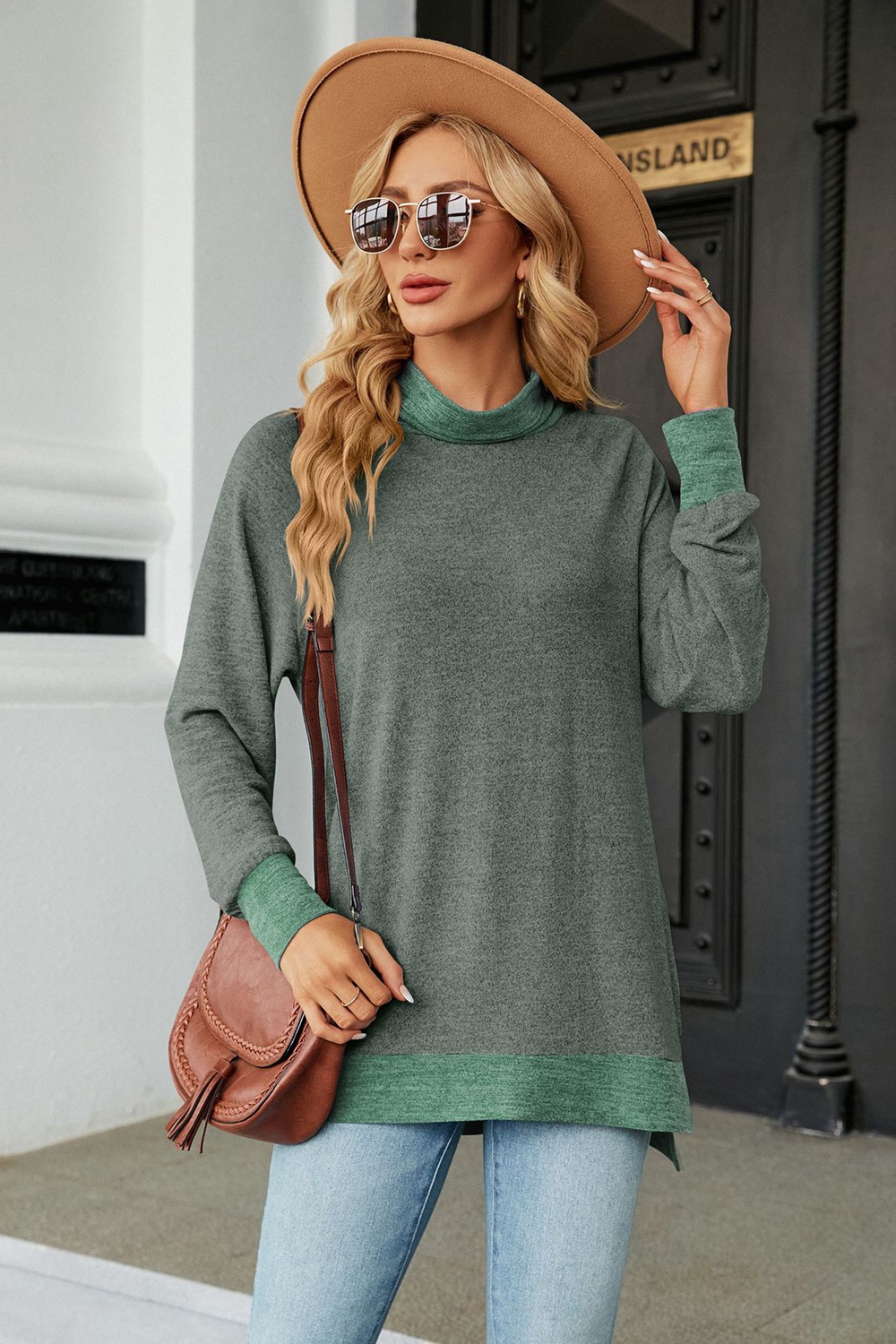 Detailed description of the Turtle Neck Long Sleeve Slit Blouse, highlighting quality, design, and unique features that make it appealing to end consumers.