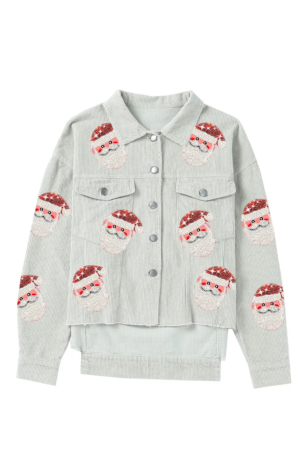 Santa Sequin High-Low Button Front Jacket