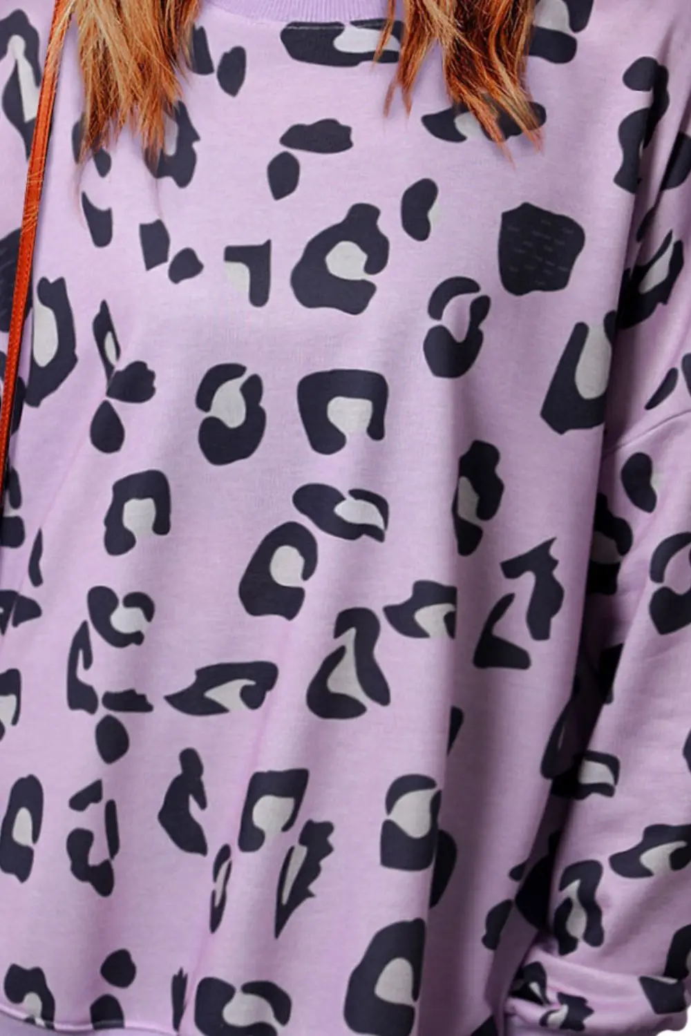 Leopard Round Neck Dropped Shoulder Sweatshirt