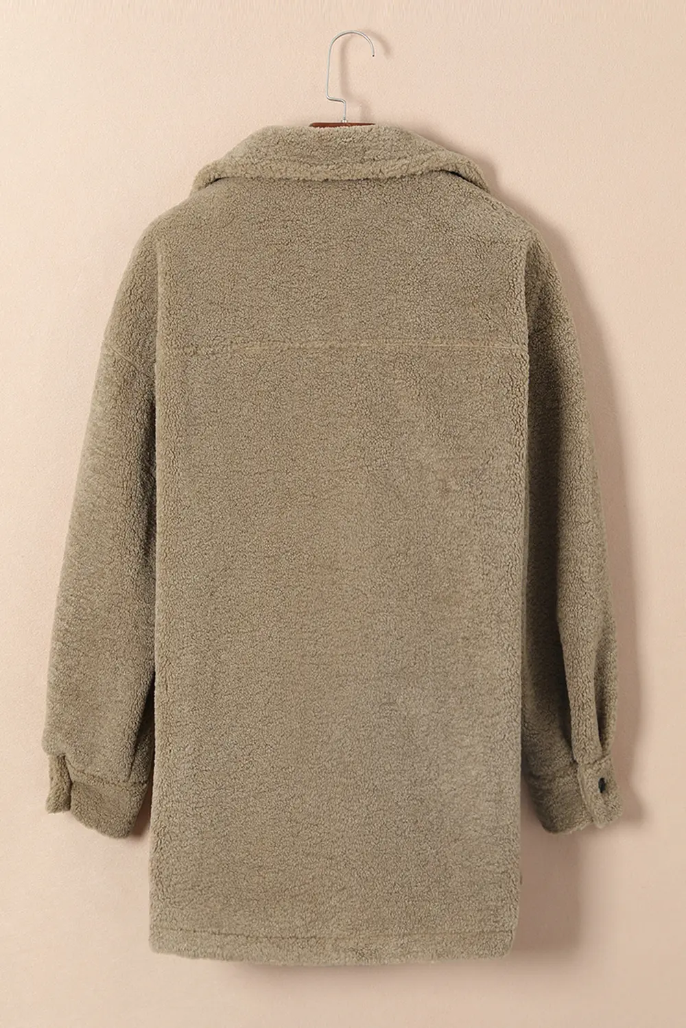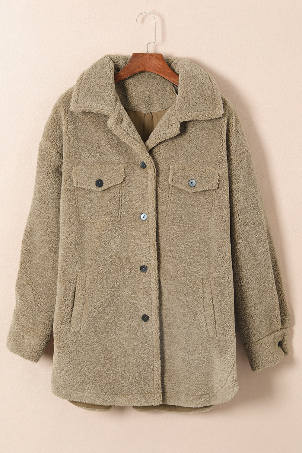 Button Up Pocketed Collared Neck Long Sleeve Jacket