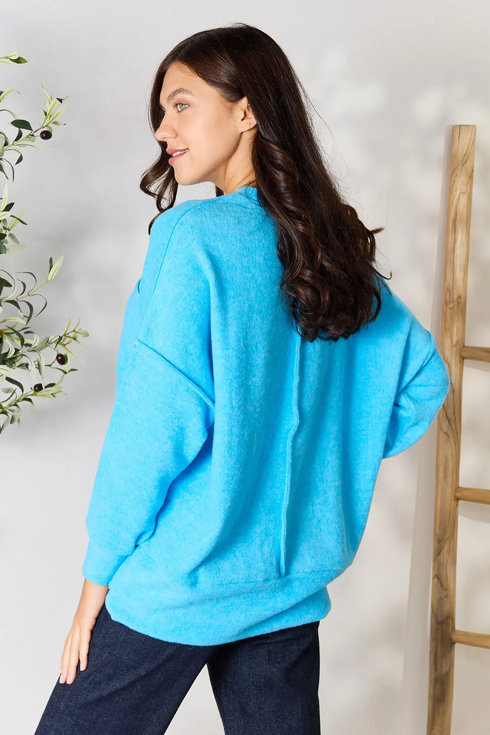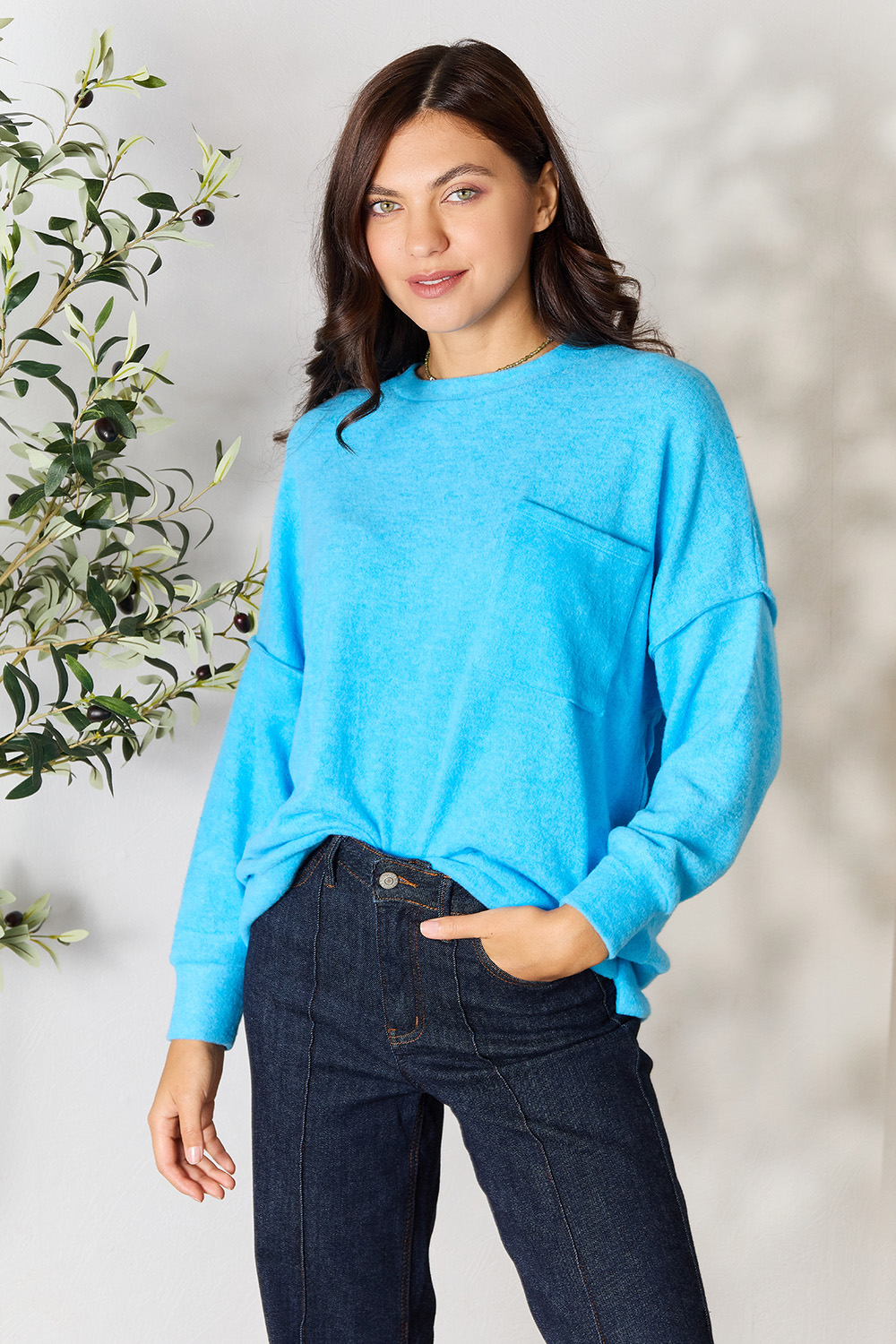 Zenana Round Neck Long Sleeve Sweater with Pocket