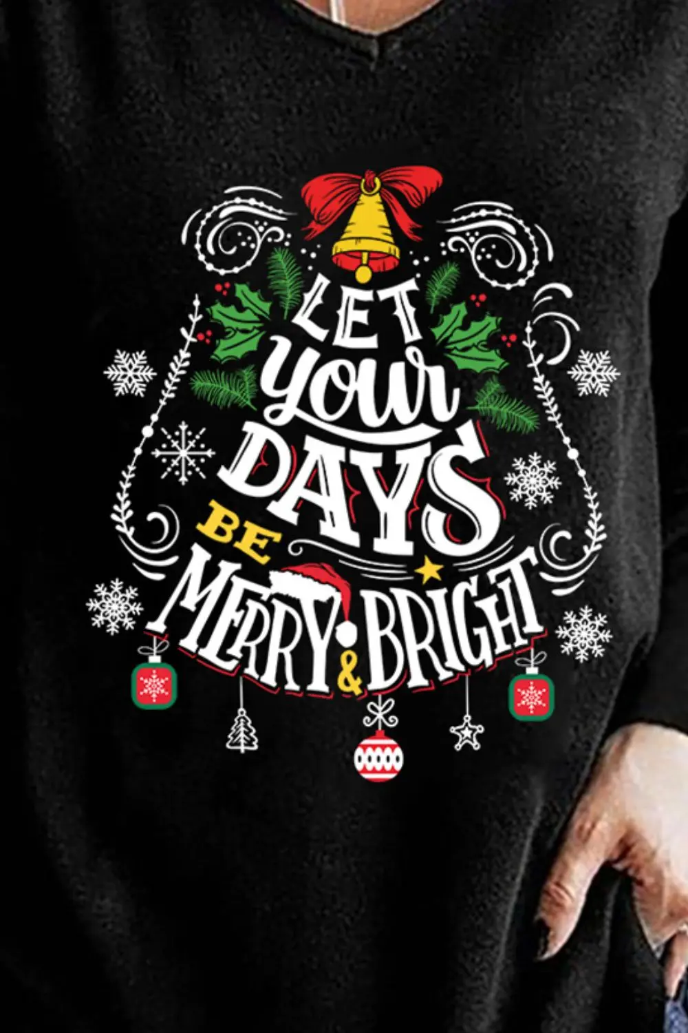 Letter Graphic V-Neck Long Sleeve T-Shirt
