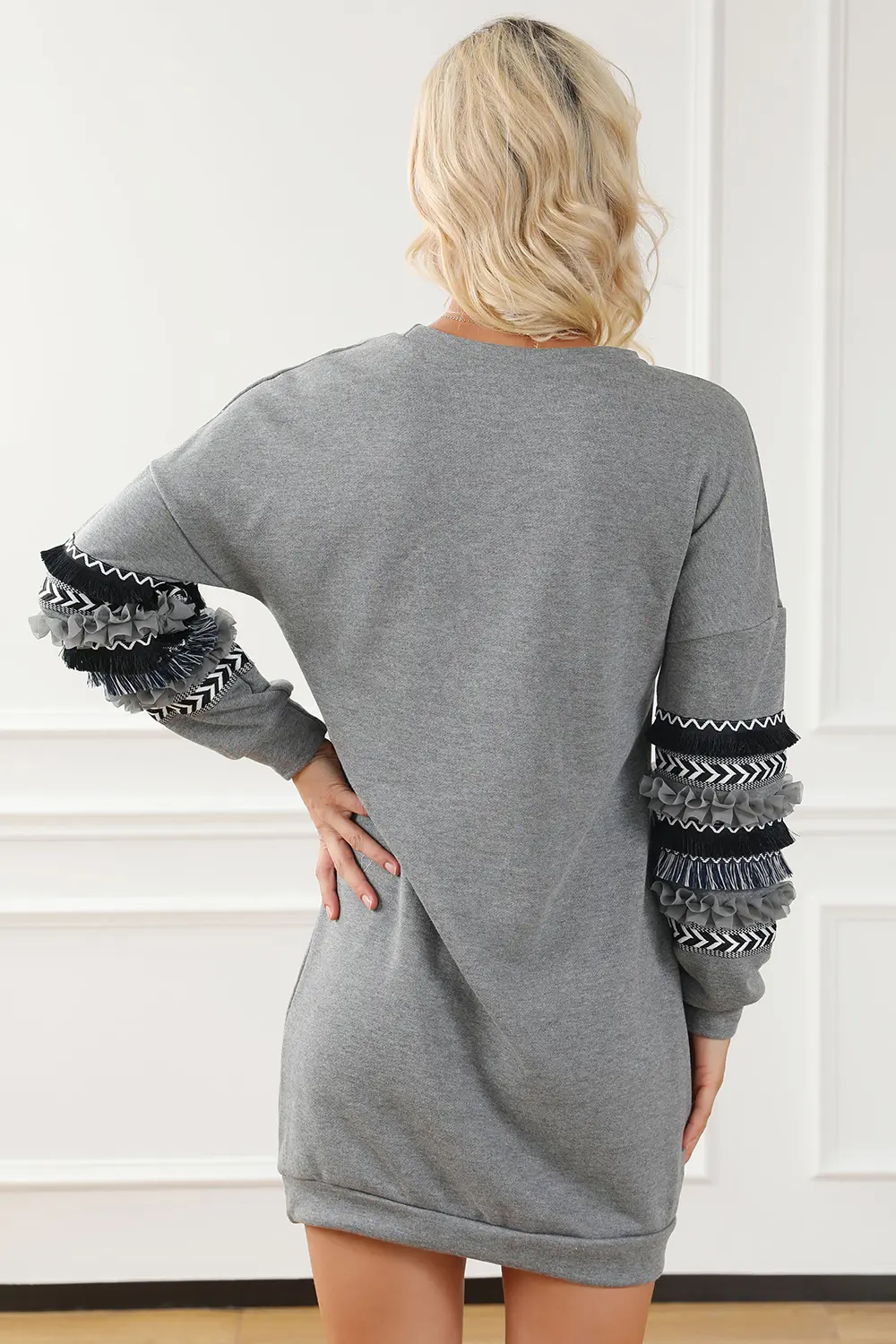 Geometric Fringe Trim Long Sleeve Mini Dress