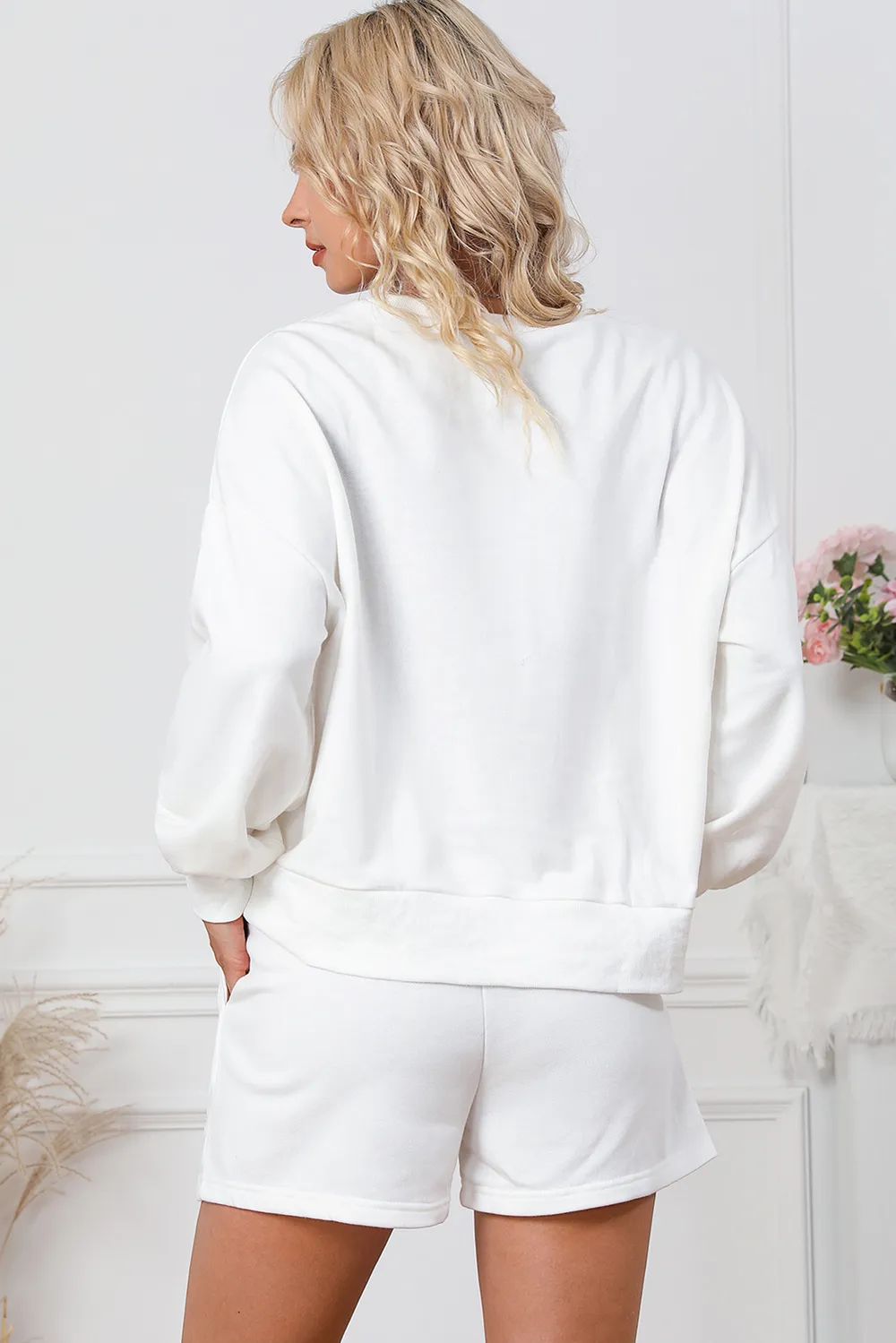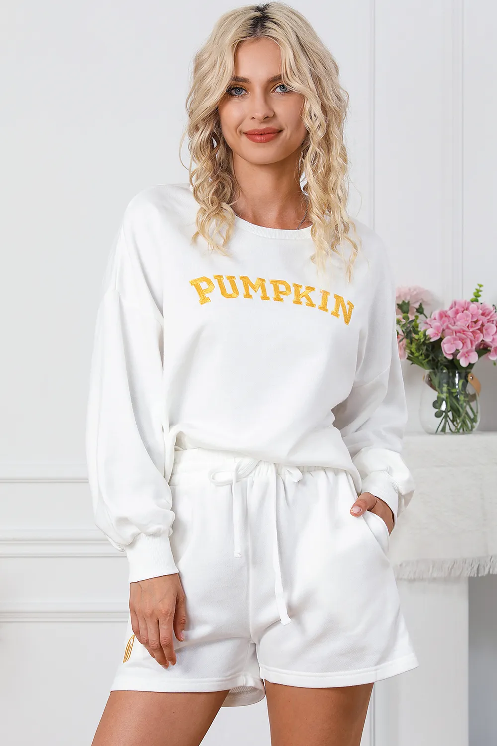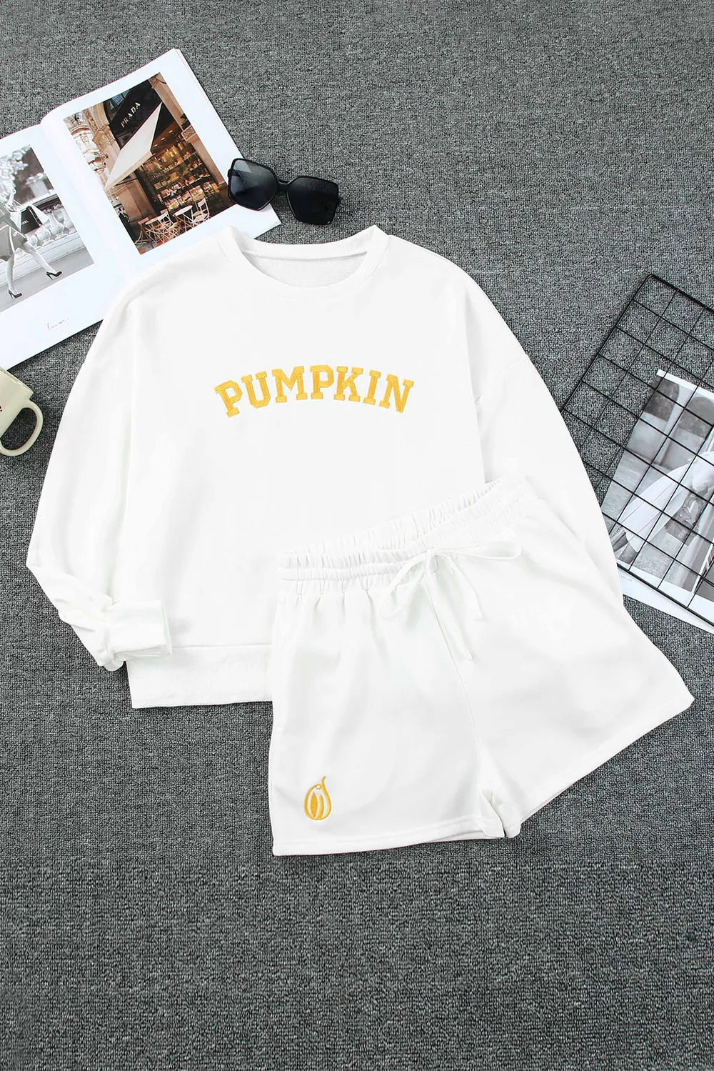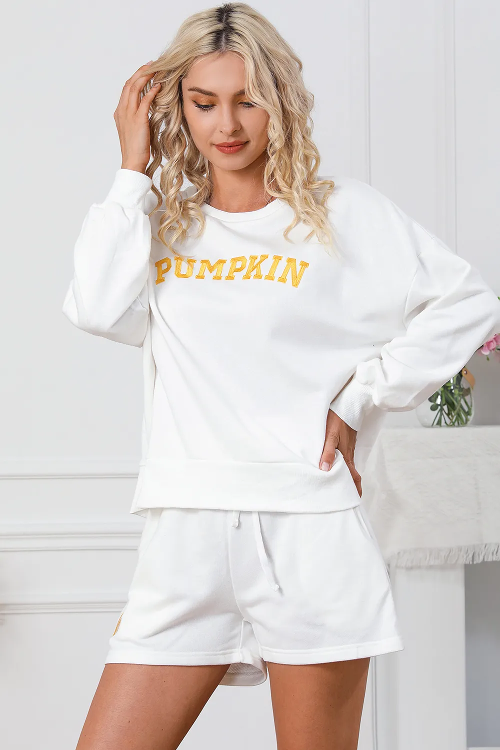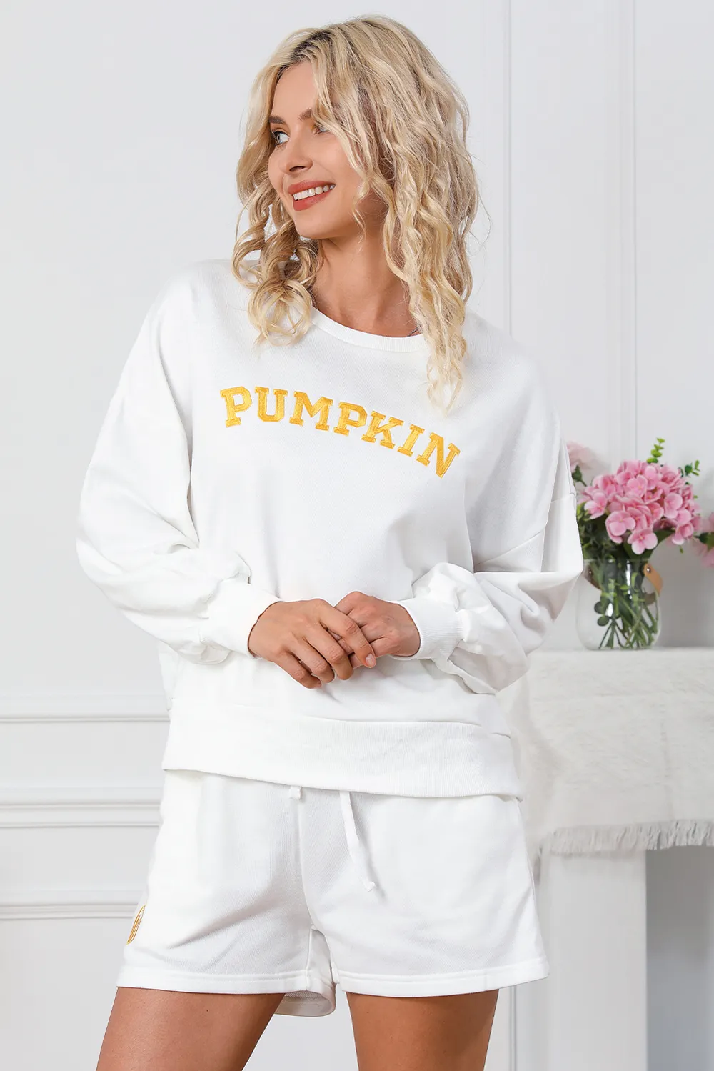 PUMPKIN Round Neck Sweatshirt and Shorts Set