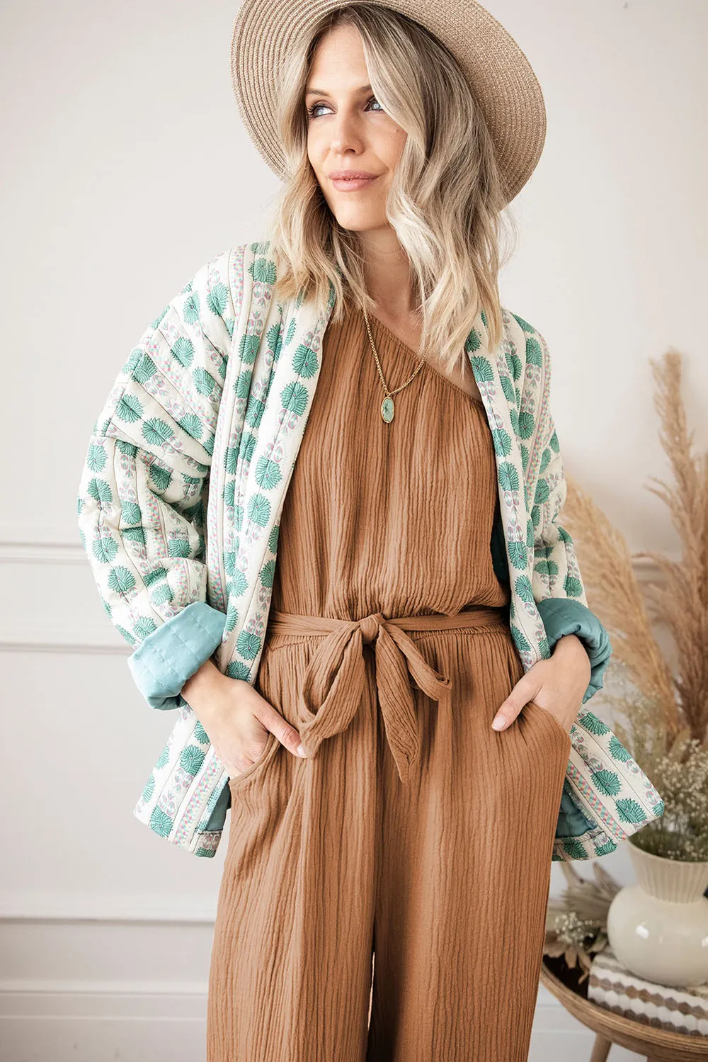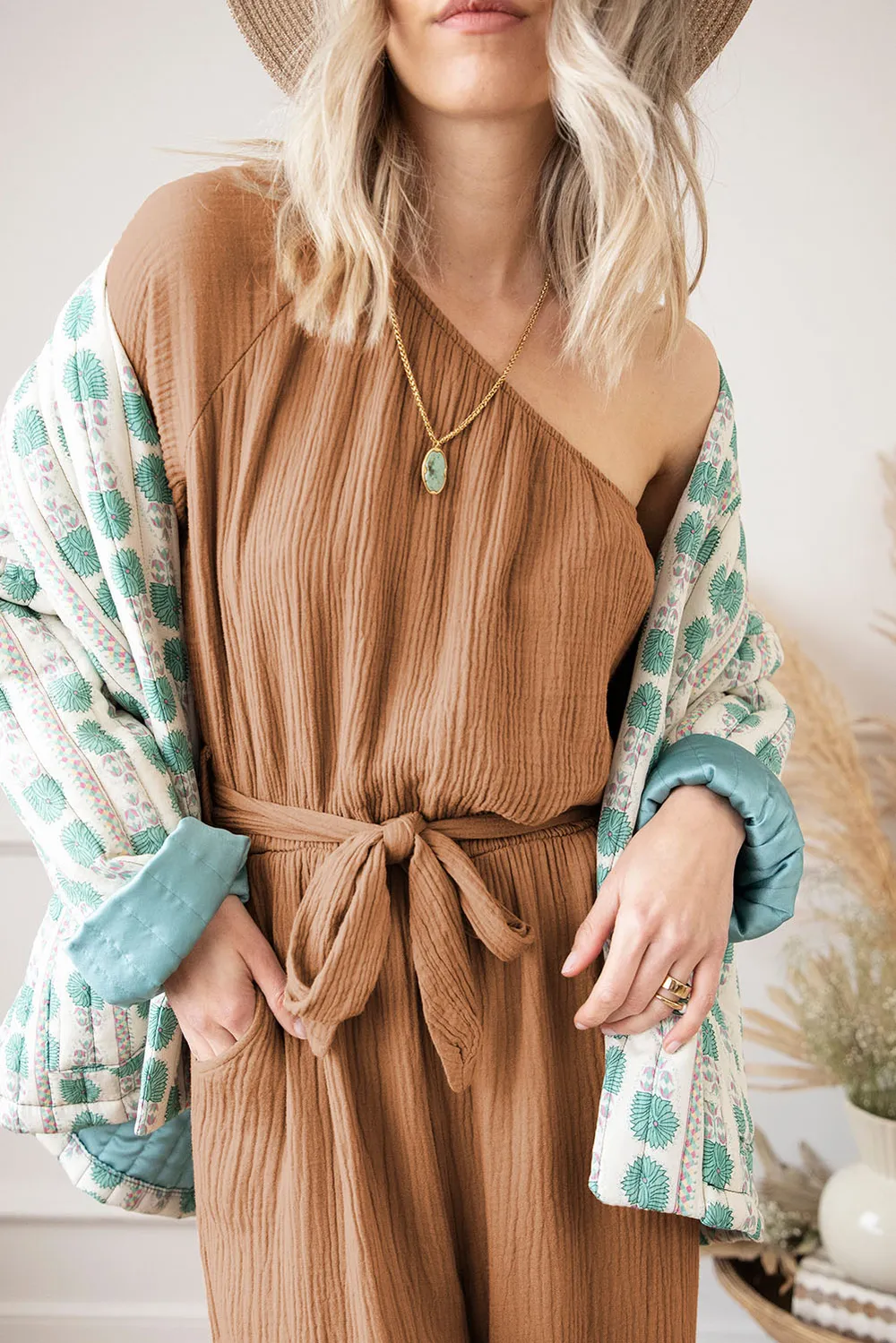 Texture Single Shoulder Tie-Waist Jumpsuit