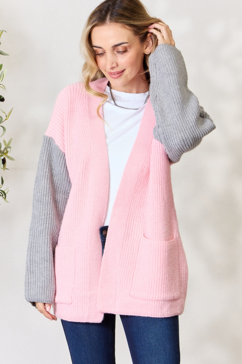 BiBi Contrast Open Front Cardigan with Pockets