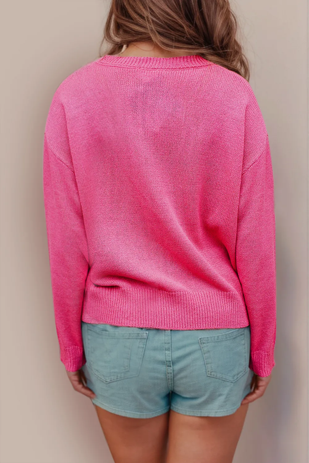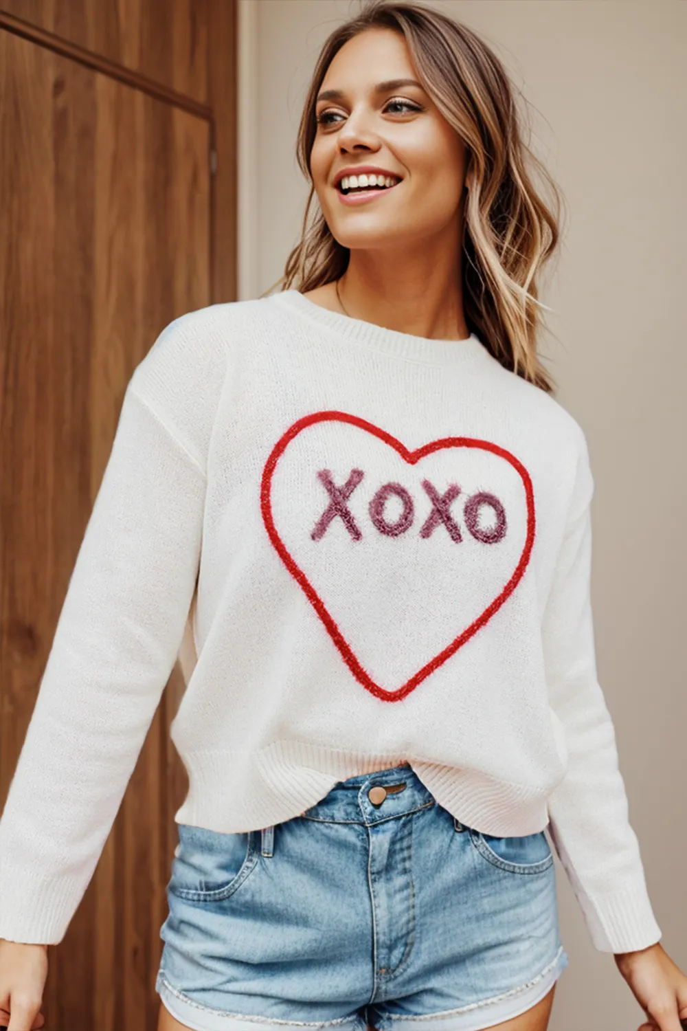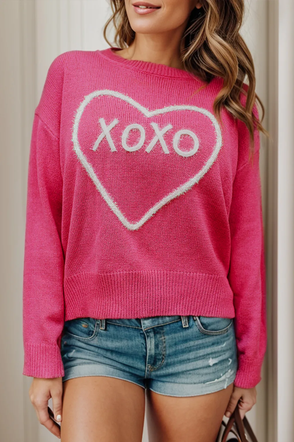 XOXO Heart Round Neck Dropped Shoulder Sweater