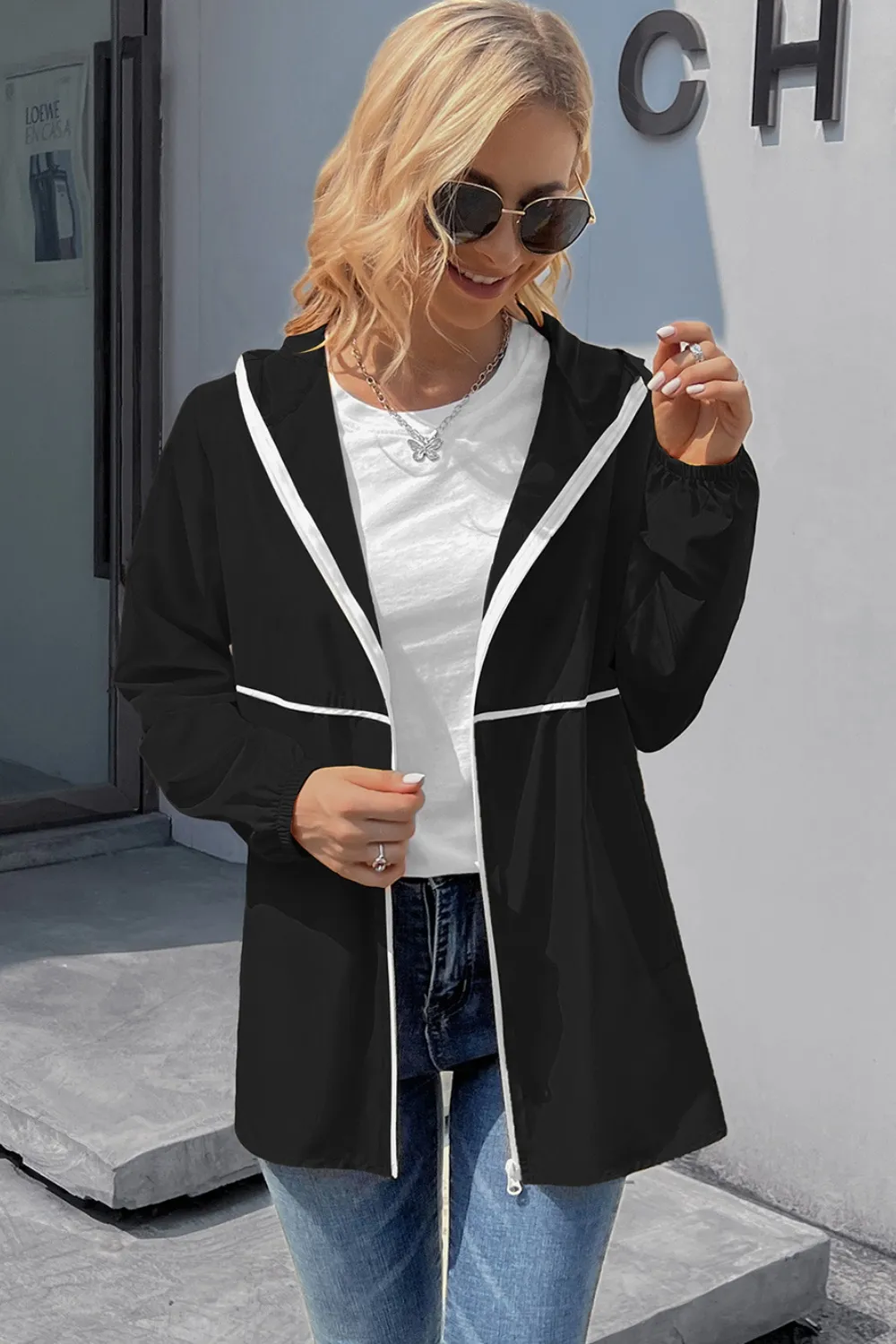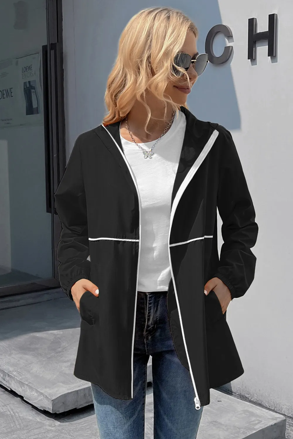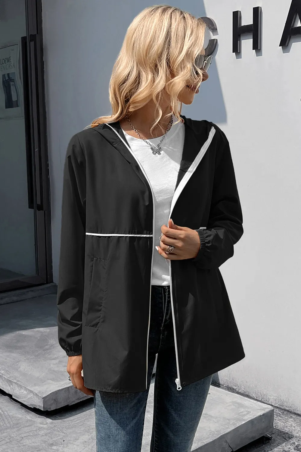 Zip Up Long Sleeve Hooded Watertight Jacket