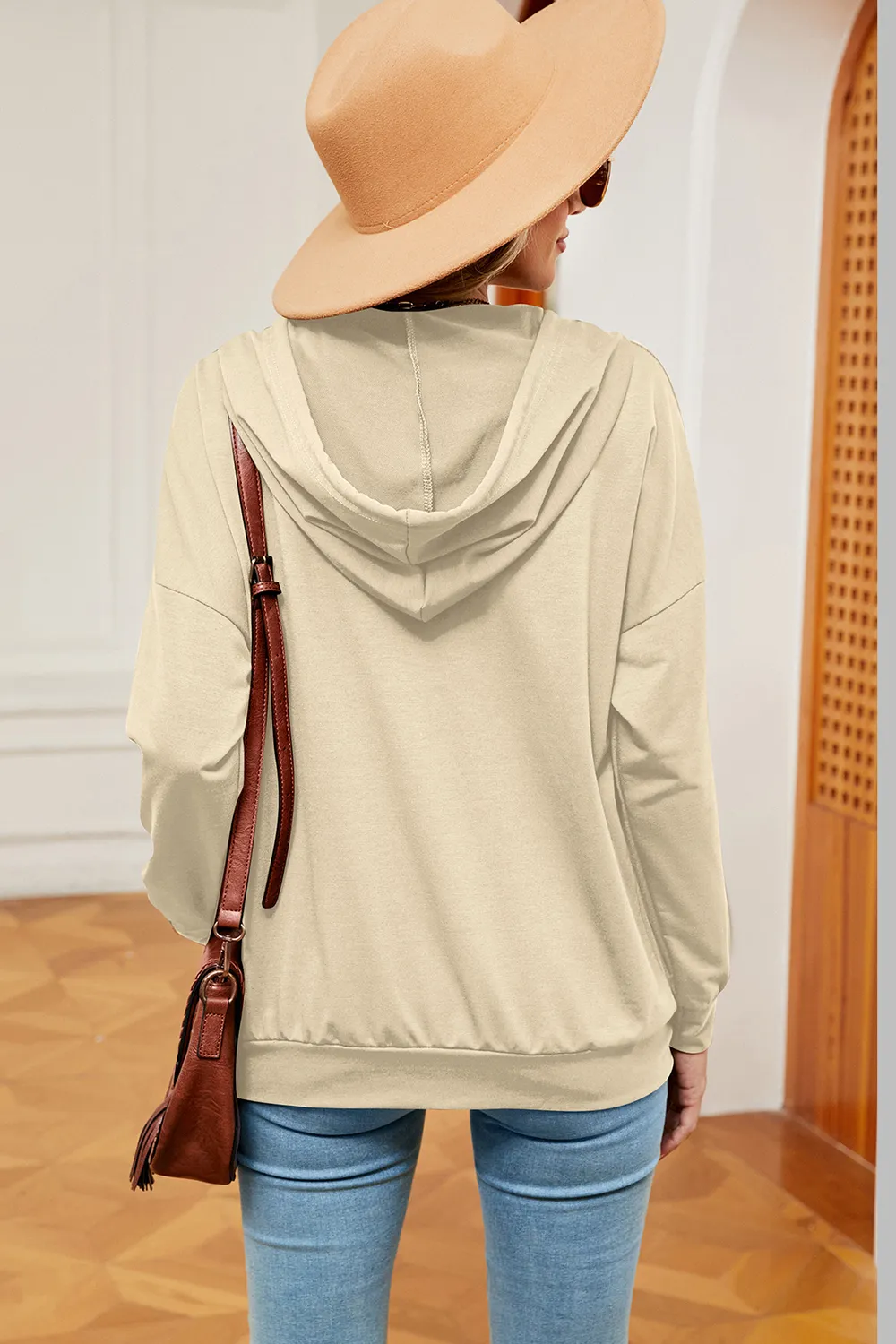 Drawstring Quarter Snap Dropped Shoulder Hoodie