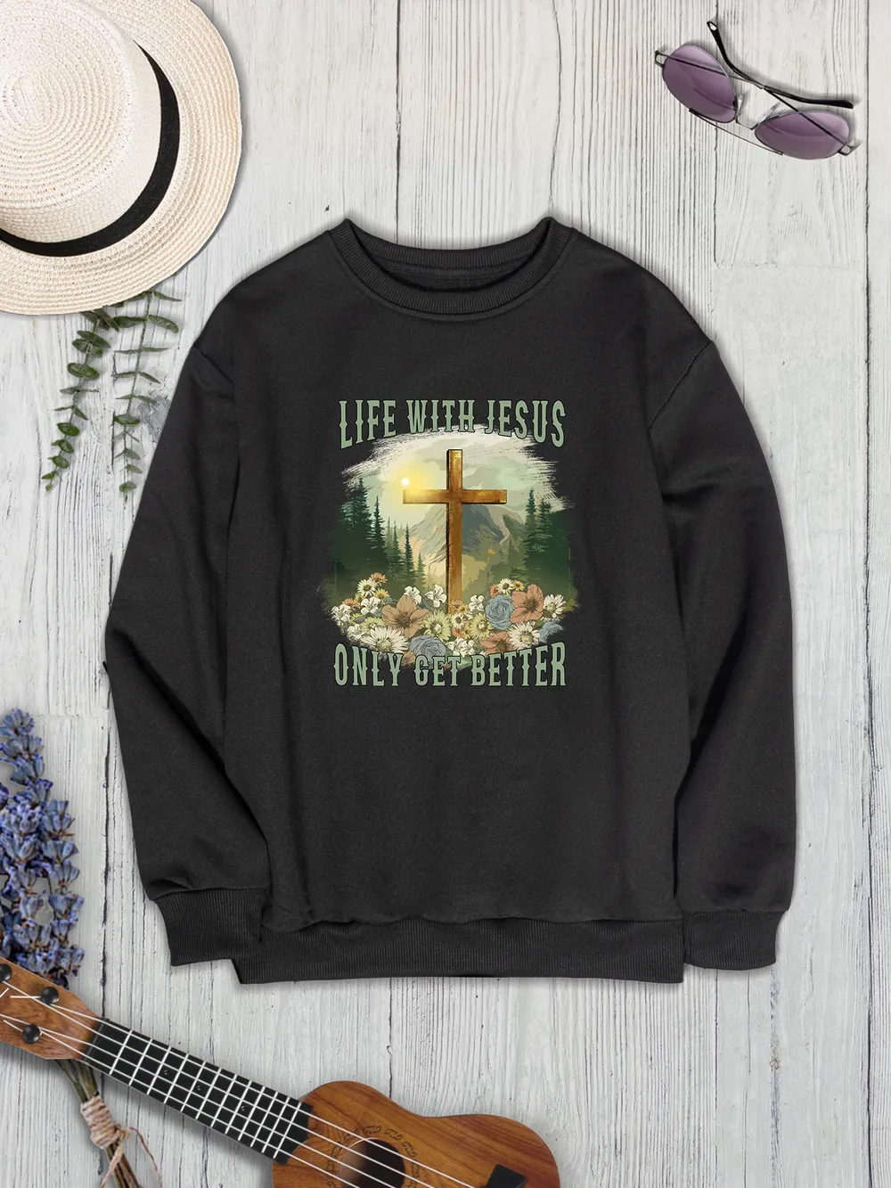 Graphic Round Neck Dropped Shoulder Sweatshirt